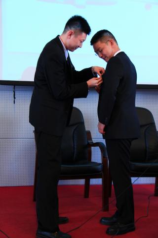 演讲结束后,Sheffield先生热情的邀请现场学员提问,同学们积极提出了自己的看法。Sheffield先生对每一个问题都进行了非常详细的解答,并为他认为提出“最好的三个问题”的学员赠送纪念品。随后,学生代表陈天石同学为Sheffield先生佩戴了象征北航yl6809永利官网的小金鹰,全体到场人员再次鼓掌,对空客公司团队的到来表示感谢。讲座在掌声中圆满结束。