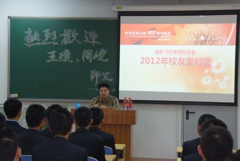 值此北航六十周年校庆到来之际,我院特别从全国各地邀请南方航空公司优秀机长、副驾驶等校友重返母校,于10月27日下午在沙河校区教学楼与飞行学员们进行面对面座谈。10场针对不同年级学员所设的座谈会,将学员们学习生涯中即将面对的问题作以交流,丰富学员们的阅历。