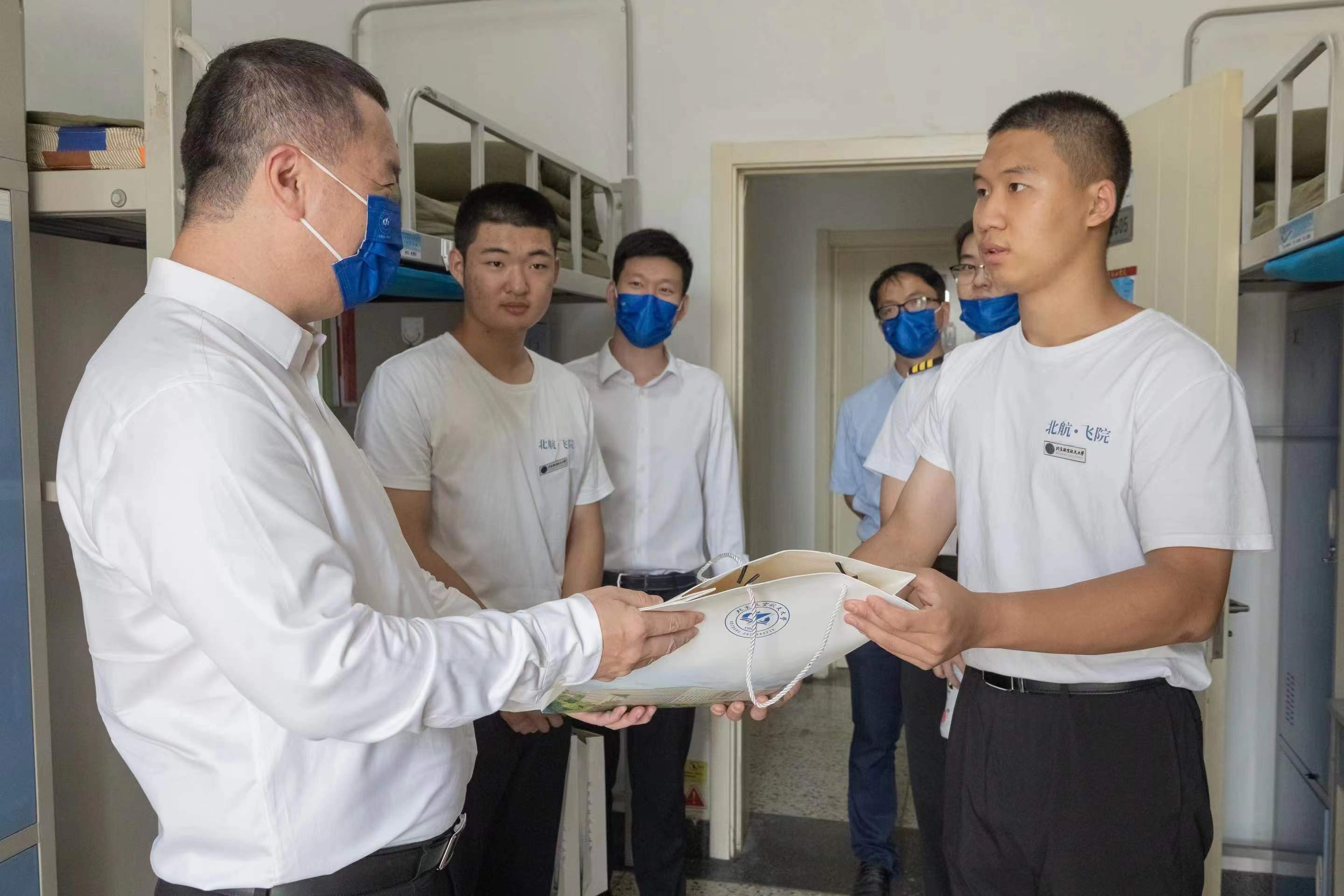 2022年9月10日上午,院长王养柱和党委副书记谷萌走访飞行技术专业新生宿舍。刚刚结束开学典礼的新同学们对自己的北航生活和学飞之路充满了期待。王养柱院长勉励同学们尽快适应大学生活,刻苦学习理论知识,锤炼过硬作风,为未来发展打下坚实基础。王养柱院长也嘱咐同学们严格遵守疫情防控要求,与同学们欢度中秋的同时,也要向家人送去中秋祝福。