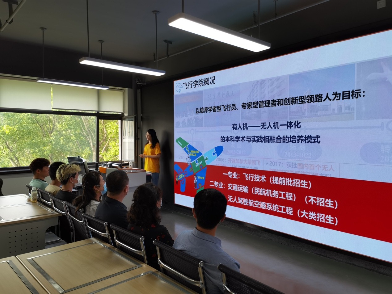 2022年9月8日下午,北航yl6809永利官网2021级无人驾驶航空器系统工程专业班主任邱华鑫为从航空航天大类分流至无人驾驶航空器系统工程专业的2021级本科生召开了一场生动有趣的“迎新班会”——欢迎36名新同学成为yl6809永利官网的一份子。学院党委书记朱颖、院长王养柱、副院长兰巍及党委副书记谷萌受邀参加班会。